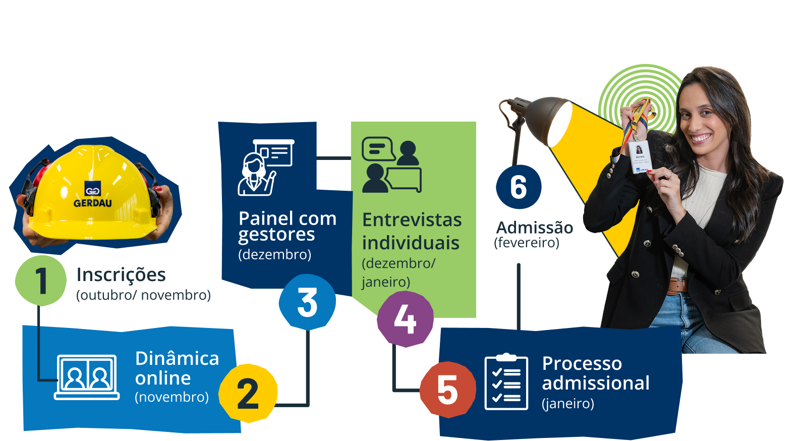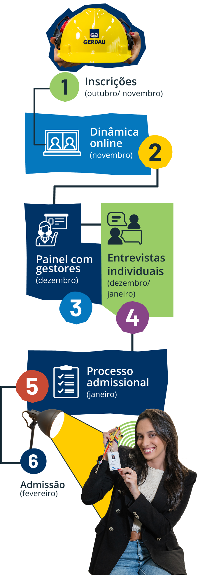 Reforçamos que a Gerdau não realiza ofertas de vagas por telefone ou aplicativos de mensagem, não divulga salários de forma explícita e não solicita nenhum tipo de pagamento para emissão de documentos, exames admissionais ou qualquer outra etapa do processo. Se alguém pedir dinheiro, desconfie!